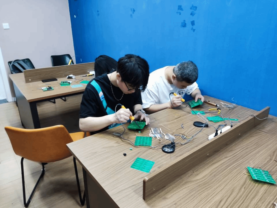 为提升工坊学生的参与度、自信度、专业度,4月22日下午,智控研发工作室借入驻之际,开展了首次理论培训课,该培训由项目工坊导师陈俊吉博士主持,并特邀在企业从事电子产品设计、开发和管理近30年的何建财老师对成员进行焊接技术指导,同学们在校内与企业双师共引的环境下,“电气元器件、焊接原理、常用元器件的检测方法”等相关基础知识得到进一步提升。
