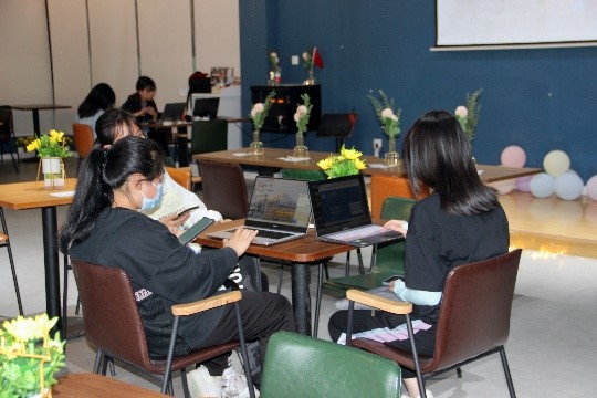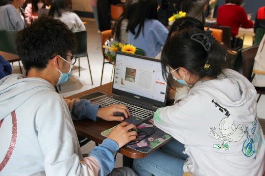 茶馆的风铃左摇右摆,伴随着清脆声响,同学们陆续进入茶馆落座。打开电脑,敲起手中的键盘,我们的思绪不约而同地飘向远方,我们沉浸在昔日的欢声笑语中,一图一文,写下往日的美好,描绘出世间的壮丽山河。一小时后,同学们开始分享他们切身体会的旅游攻略。