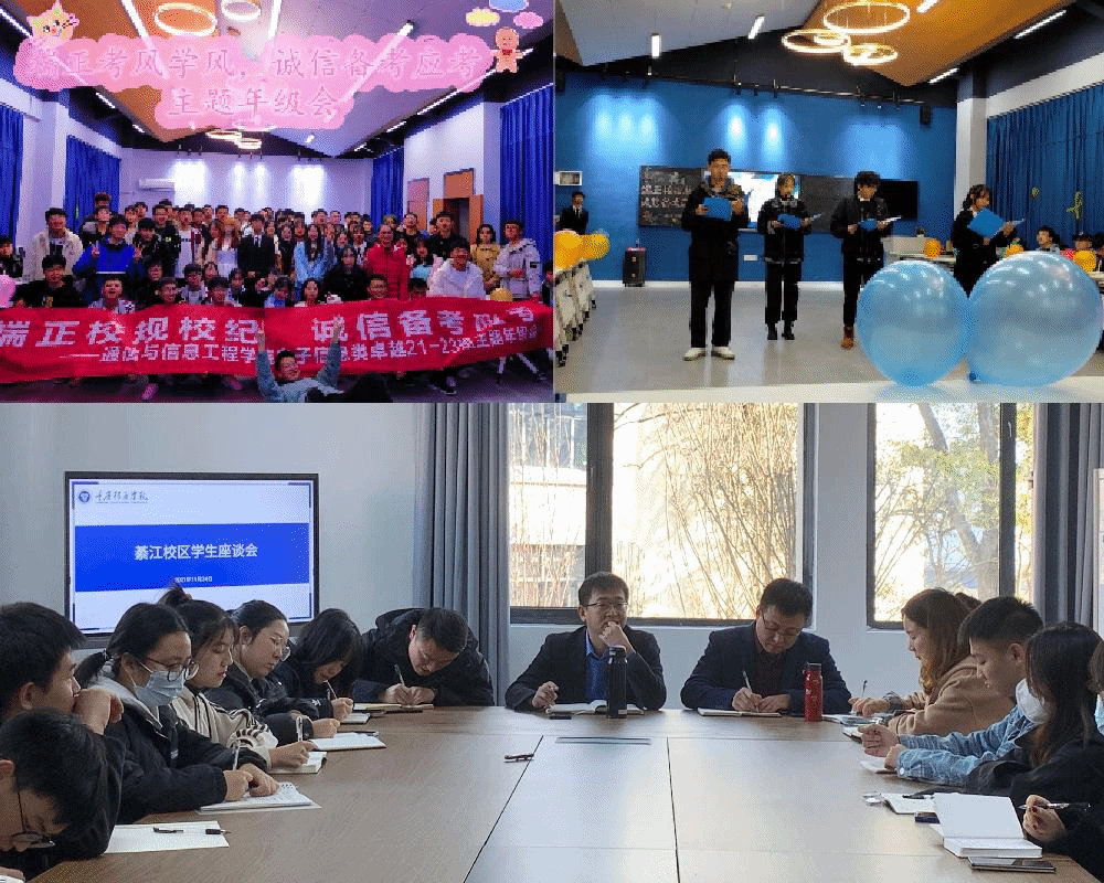 綦江校区非常重视优良学风培育工作,新生刚进校就强调整体部署,强化顶层设计,校级层面开展学风督查,以评促建,打造优秀学风示范学院、优秀学风示范班级,学院围绕早课早练、主题班会年级会、专题活动等重点落实,营造全院优良学风氛围,围绕特色育人“双院”制,开设多样化的兴趣角,辅助解决学生课业问题、引领学生成长,多措并举、多面发力,抓习惯、抓课堂、抓活动、抓过程、抓成效,构建起精准化、精细化、多元化的学风建设工作体系。自工作开展以来,学风建设取得阶段性成效,第一学期期末考试实现0作弊,成绩合格率高达97.04%。