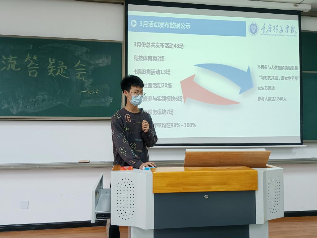 为不断优化并规范悠学派APP的管理和使用,有效推动数字化校园的建设,保障各级各类完满教育活动持续开展,2022年3月30日16时,校院两级学生会学习部在仁者楼407教室就“三月完满学分公示”、“悠学派数据分析”相关问题举办答疑会。出席本次会议的有校学生会指导老师曹誉莹及校院两级学生会学习部部分干事代表。本场会议以促进校院两级学习部的交流合作,解答学生在悠学派使用中出现的疑惑,宣读悠学派管理总则中的条款为主要内容,以悠学派数据分析公示为会议主要目的,强调学习部要紧跟活动举办进程,做好积分监管工作。