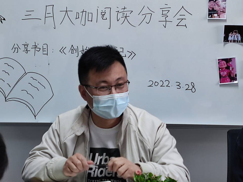 分享会上,老师们依次分享自己的读书笔记与读书心得。陈永书副科长谈到自己在阅读之后对自身工作有了新的思考:在职场中我们要肯钻肯研、努力做到“又红又专”,对自己负责的专项工作要做到心中有数和心中有术,既要有宏观的思考、准确恰当的方法,也要对具体细节、进度有把控。同时要提高工作专业性,以保证工作效率和质量。程荧老师则是通过对具体文段的理解,谈到自己在书中的收获:季琦对团队管理的方法、将焦虑转化为前进动力、将生活的智慧(联想思维)运用到工作中,做事时不仅要用经验更要全心投入才能成功等。刘倚函老师也介绍了自己对“天、地、人”三个维度的理解,表示了对“人”的内容的偏好和对季琦先生的生活态度、人生追求的欣赏,最后还分享了作者对读者的寄语:“人必须安静下来,才能倾听内心的声音”和躲避嘈杂外界的方法。温宗航老师看得非常仔细,从序言开始认真研究与分析,尤其第三板块“人”部分讲述的生活中的美学令他感触很深,也谈到读后感觉整本书内容十分充实,学到很多为人处世与职场的规则意识,他表示在工作上,不只要有理论,更要将行动落地。匡鹏老师则是对部分故事和一些特定的语句有自己的共鸣与理解,分享了佼佼者的共性、乔布斯的故事、对“若无闲事挂心头”的向往等等,从小时候的故事到长大后的热爱,将书中的道理带入到自己的生活和工作中。张纯霞老师表达了自己对全文前两个部分的看法,第一章表明生命中是有联系、因缘的,每个人都要有信仰,相信自己、相信勇气、相信生命;第二章是说团队需要结合人员的具体情况,用人之长、容人之短,才能更好地发挥每个人的作用。工作中更要思考,有思考才会突破,有突破才会有璀璨的未来。林红老师将自己理解娓娓道来,她认为本书是季琦的生活艺术、经商之道与生活感悟,而对应的关键词是享受、计划与热爱。享受是寻找工作与生活的边界感;计划是强调工作计划的重要性;热爱是指热爱生活,创造美好,林老师认为这本书对自己的工作、生活有着很好的指导意义。