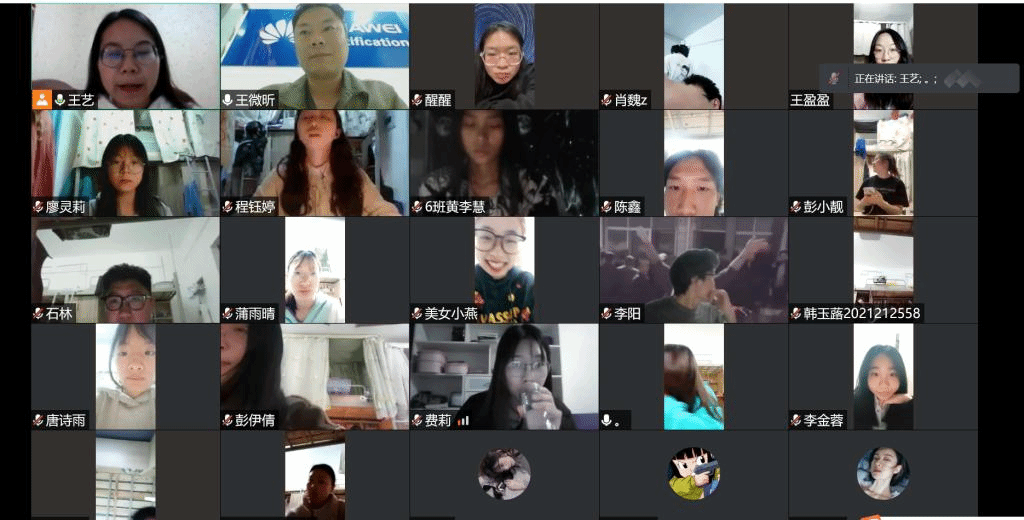 隔空不隔爱,在线相聚暖人心。2022年3月24日,王艺老师从同学们当下需求出发,和同学们相聚在腾讯会议,进行了一系列交流活动。本次交流会还邀请到了王微昕老师、费莉老师、赖小龙老师以及他们的异科生,共话疫情,共谈“互联网+”,共聊大咖。
