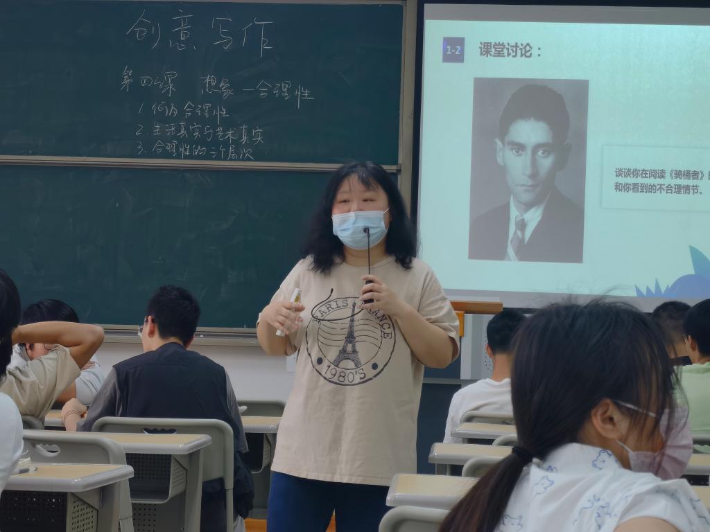 上周,夏曦为了与这堂课很好的联动,已安排同学们提前阅读了奥地利小说家弗兰兹·卡夫卡的短篇小说《骑桶者》,他怎么骑桶?桶怎么会飞?怎么还成了名篇佳作?故事的合理性在哪里?当问到同学们有没有阅读时,全班同学都说读了,一个女生大声补了一句:读了,但没读懂,作者像有妄想症。