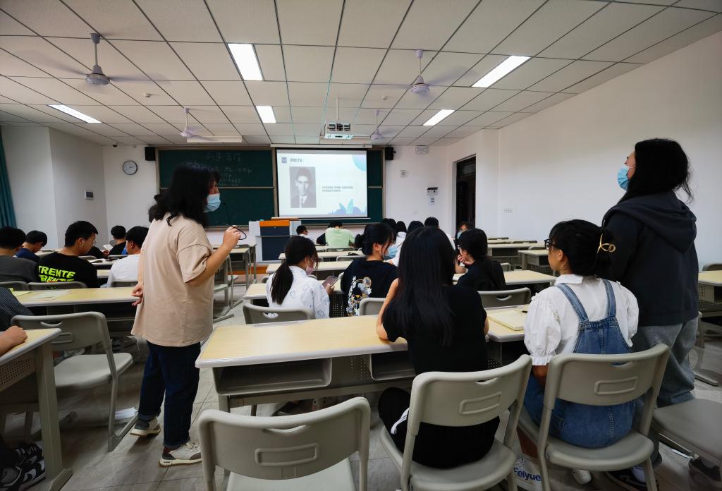 全班同学都按组分好座,每组同学都有人分析这个作品的合理性及隐寓性。十八九岁的青春学子们,有他们独特视角上的理解和判断。夏曦老师频频点头,她强调,我们阅读时,脑子要跟着“骑桶者”一起飞,一起感受。描绘底层人物的挣扎是最有故事的,作品借助细节上描绘的精确性,心态上的逼真性,卡夫卡的作品虽然看似变形荒诞,但都能让人产生一种心理上的真实,一切都变成了现实的、可触摸到的,与我们息息相关,甚至就像发生在自己身上一样,合理性就合理了。