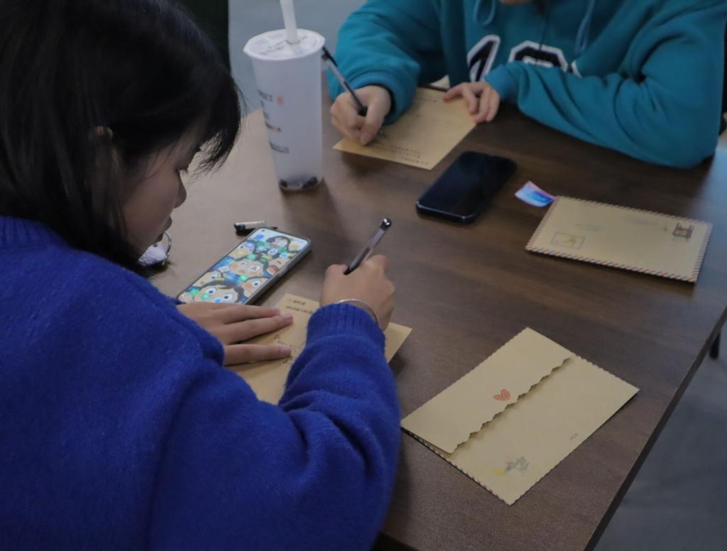 “海内存知己,天涯若比邻。”面对无法抗拒的距离,人们一直都试图用这句诗来宽慰自己的内心,可并非所有人都能接受这个想法,在茶馆中,他们想要用最直接的家书传达出自己的思念。有同学向工作人员透露他在信中写了这样一句话:“你也许已走出我的视线,但从未走出我的思念。”也同学这样写到:“总在一个人的时候,最是思念远方的友人,记挂家乡的亲人,连梦里都是来自家人的呼唤。封校仅数日,但可谓度日如年。”