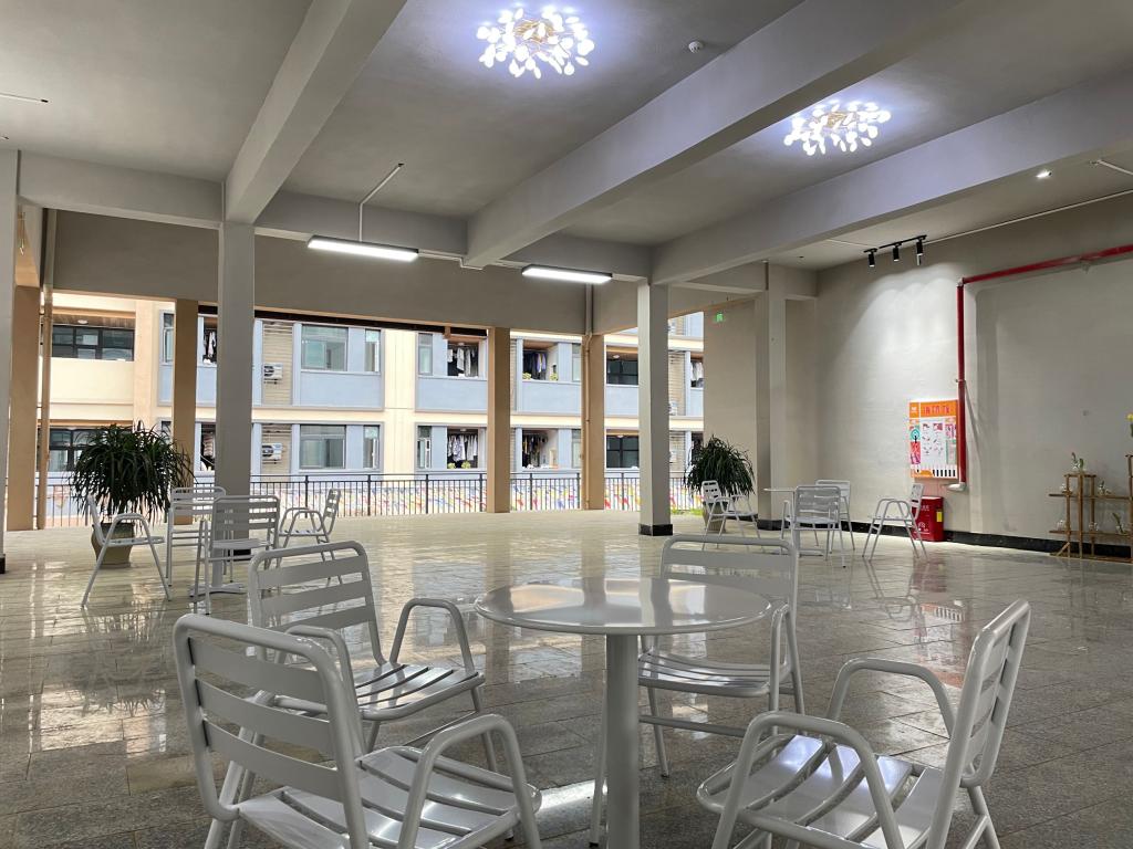 步入中庭,倏然可见的是置立于此的数把秋千椅,在阵阵轻风吹过的庭院广场上不时慢慢摇动。偶尔时分,时而闲逛亦或有意散步路经中庭,或许还能见到两两好友于摇晃的长椅上悠然共坐,欣然长谈……此外还增设了户外桌椅,提升户外公共空间的使用体验。