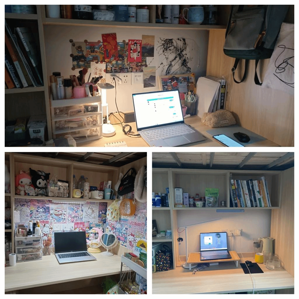 根据前期工作统筹,各小组检查人员迅速动身,分别前往应检学生宿舍展开深入检查。在检查过程中不难发现,同学们除了维护宿舍日常清洁卫生外,还对自己的寝室小家做了进行了精心装扮,或是贴上自己喜欢的动漫人物,亦或是将桌面物品摆放整齐,显得“心灵”空间错落有致。