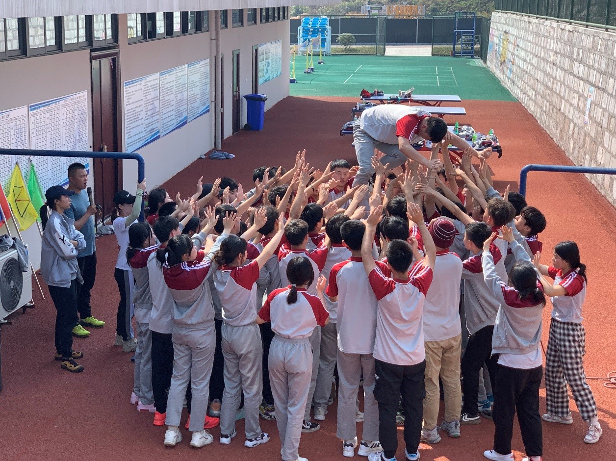 刚刚组建完成的小队队员之间还有些许陌生,在展示队名、队歌、队训后,伴随着老师讲解完课程相关的简介和注意事项后,在保证课程目的能成功实现的前提下具有良好的竞争环境、增强学生之间的凝聚力,锻炼学生相互之间团队的沟通、配合等,同学被随机分成四个小组,以小组为单位挑战各种项目。