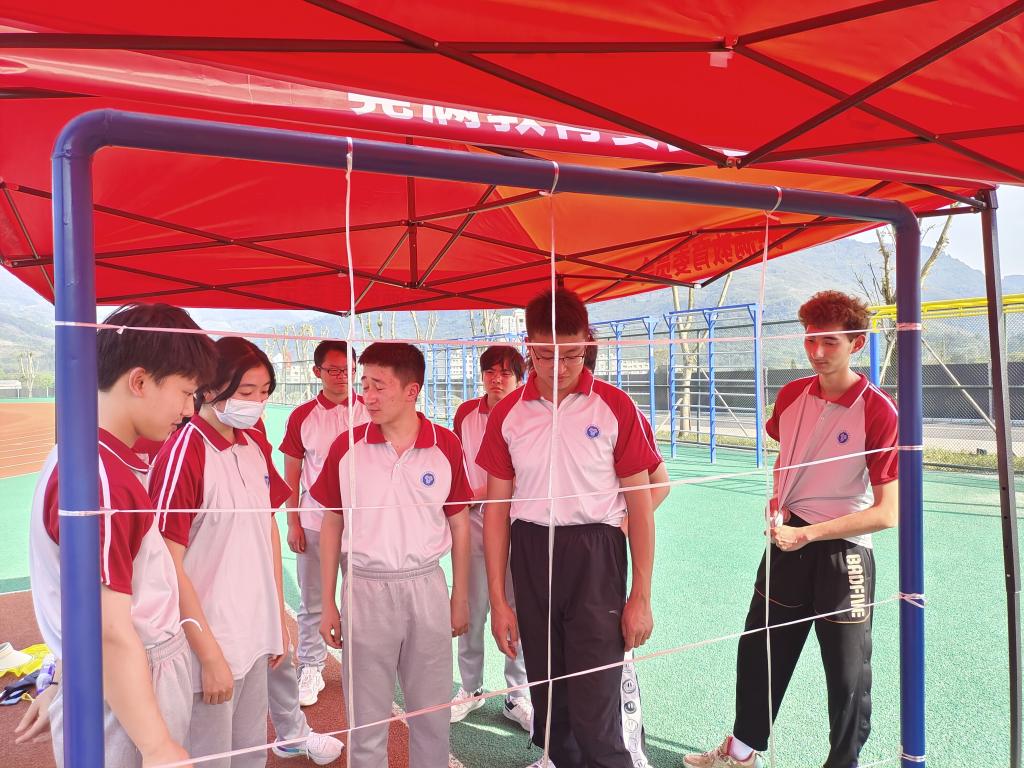 在有限的时间里小队成员需要集体穿过危险重重的“电网”,每一个电网只能一名同学穿过,如何在有限的时间里合理分配“电网”和成员间的相互配合二者缺一不可。紧张的气氛使得同学们在挑战途中全神贯注,更是在这个环节明白每个人都是团队中不可或缺的一部分,自己的一言一行甚至一些小小的细节都会使得小队前功尽弃、挑战失败。而挑战成功带来的巨大成就感也使得每支小队的成员越来越有归属感。
