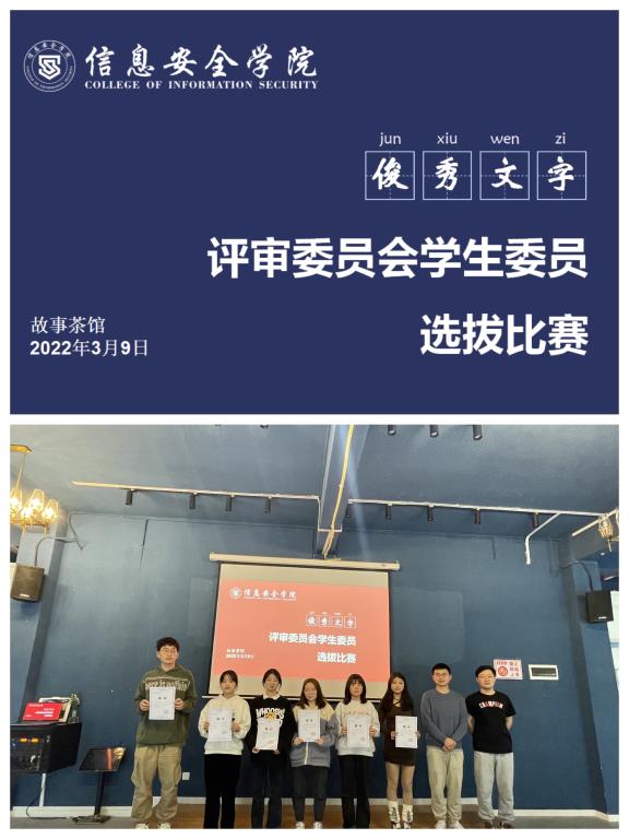 中华文化绵远流长,汉字是民族文化传承的重要载体,书法更是凝结了华夏民族集实用与美学于一体的智慧。为进一步推动信息安全学院“俊秀文字”工程有序开展,弘扬中华民族书法文化传统,增强对祖国汉字文化的了解,活跃校园文化氛围,提高学生们的书写质量、书写兴趣,通过较高书法水平学生团队的运作,推进和改造此项工程的制度化、规范化及合理化,实现专项工作的有序进行。3月9日,我院开展“俊秀文字”评审工作委员会学生委员的选拔工作。