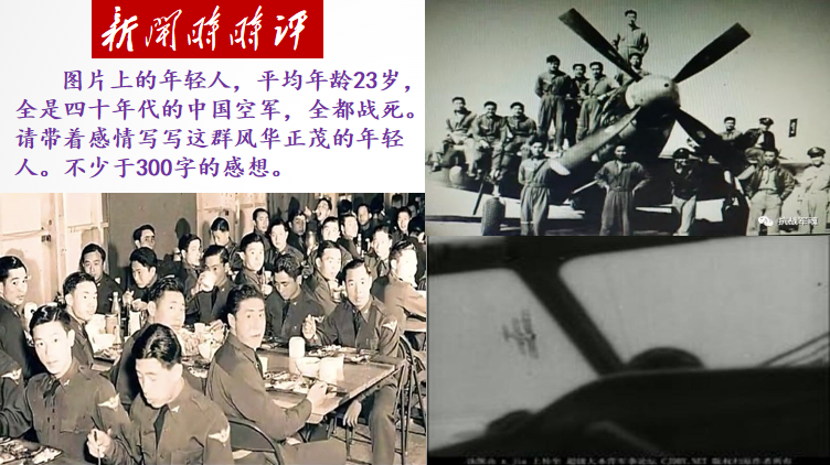 王老师眼含热泪,中国数千名空军飞行员在保卫祖国、保卫人民的抗战中壮烈殉国,平均年龄只有23岁,其中大量飞行员家境殷实,为何要去牺牲自己宝贵的生命呢?“因为侵略者已经打进了家门,占我领土,烧我房屋,杀我家人,奸我妻女,我们这些年轻人再不站出来,就亡国了,就会落下千古骂名。马革裹尸还,是壮哉之举!”王老师说:“今天我们坐在春天的教室里上课,吃着美味的重庆小面,挽着心爱恋人的手,没有先辈先烈们的牺牲,哪有今天的盛世中华!”