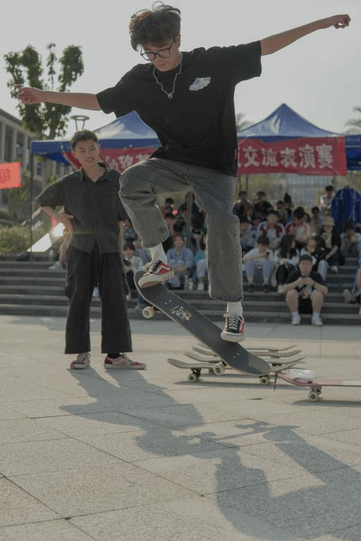 近几年来,滑板作为一项极限运动,一直是现代年轻人证明自我、挑战极限的表达方式。“滑否”滑板社作为新校区首批成立的社团之一,通过每天、定时定点的在校园内进行训练,在校内掀起了一阵滑板运动的小热潮。基于此,我校与重庆外语外事学院街头文化社联动,于3月11日移通綦江校区进门小广场成功举办“语你移綦·趣味滑板”交流表演赛。