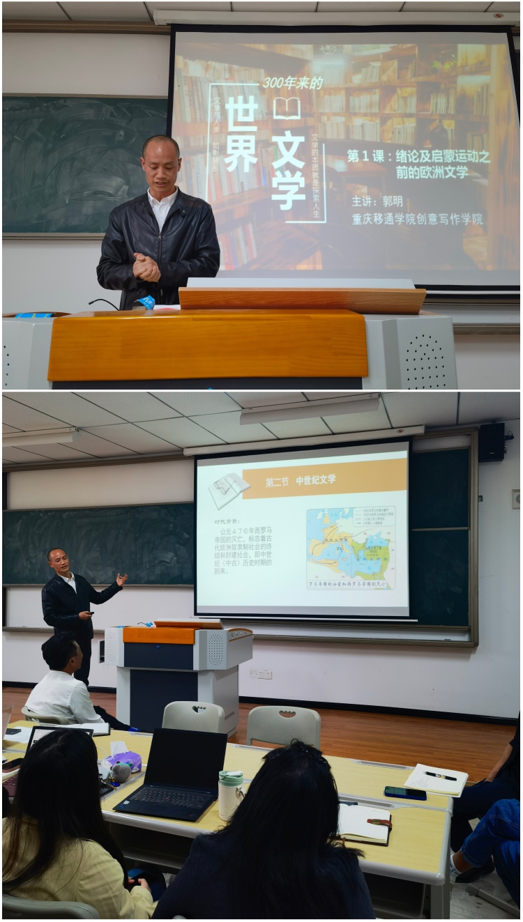 文学与人类如影随形,但对于文学是什么、文学要干什么以及世界文学如何演进等这些问题,很多人却一知半解。文学的本质就是探索人生!郭明老师首先介绍了为什么要学习《300年来的世界文学》。他说:“从人类蒙昧时代开始,由文学家们推动和践行的,与时代发展相偕行的人文主义、古典主义、浪漫主义、批判现实主义、自然主义、现实主义、现代主义、后现代主义等文学主潮组成的这条‘发展线’,就是世界文学的演进脉络,从纵向上理清这条线,再在横向上做阅读了解,你便算是读懂世界文学及文学存在的意义了。”