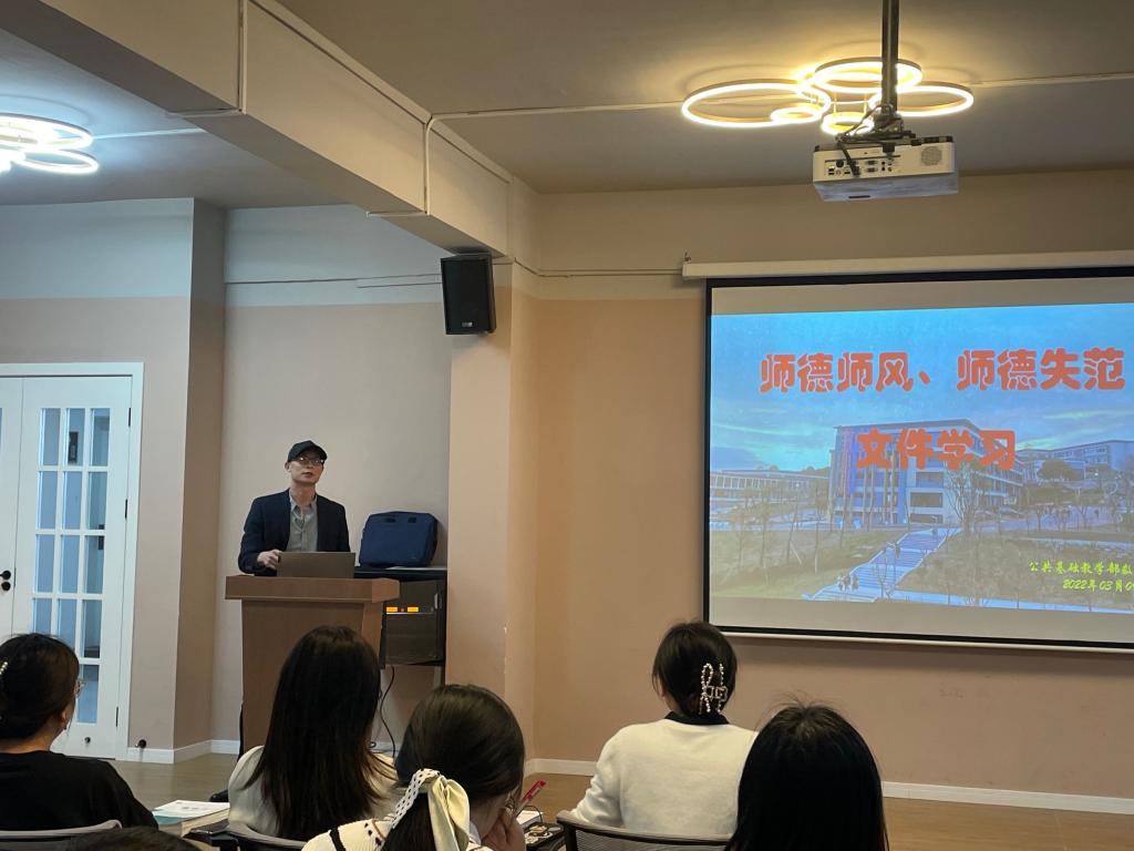 首先,钟波副处长肯定了数理教学组的辛勤工作,对近期全体老师的工作做了总结,并提出要求。一是加强“老带新”工作,鼓励新老师多听老教师的课程,提高自身教学水平和业务能力;二是注重课程思政,不必生搬硬套,育人为本,自然融入;三是做好师德师风的学习,“以学生为中心,以教学为根本”、“育人为本,德育为先”;四是呼吁教师积极参加青年教师教学竞赛,抓住学校提供的机会和平台,磨练自身。
