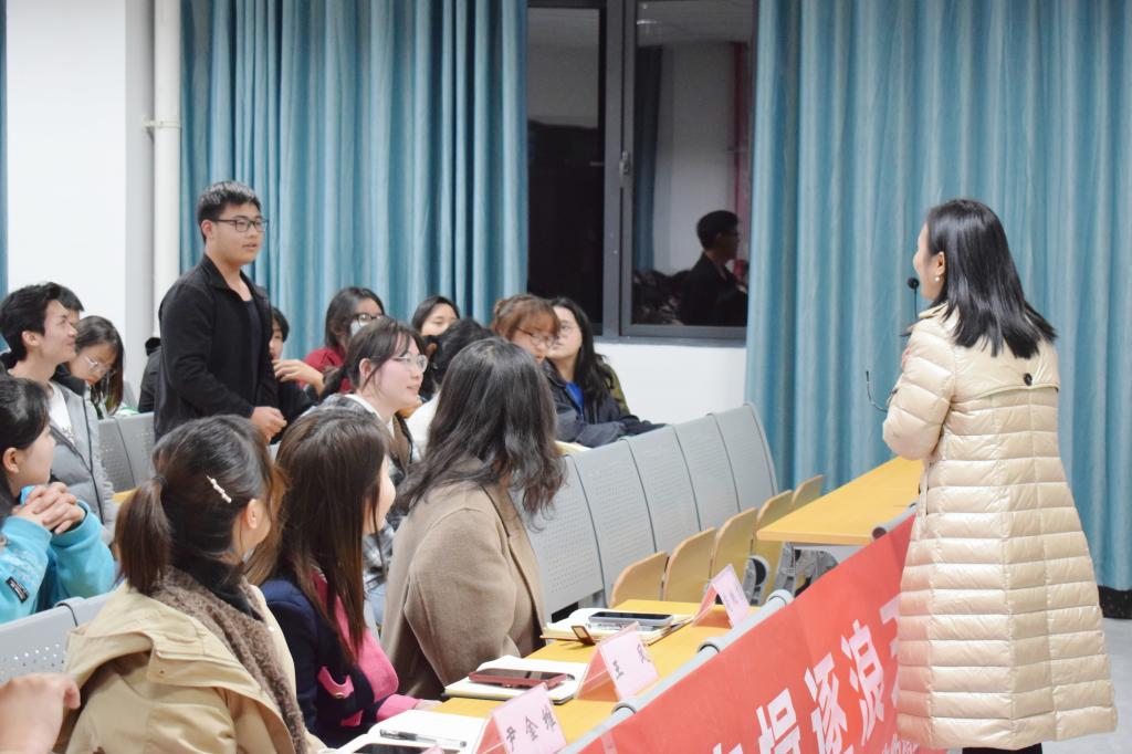 “团队积极性不高怎么办?干事不服从管理怎么办?干事.....”一学期后问题层出不穷,每一个十分犀利。对于此类问题,刘薇唯老师提出她的见解:“把每一次任务当作机遇,不忘加入学生组织的初衷,成就更好的自己。”其实学生组织如同一个团队,在一个团队里,不可能随时随地每个人都打了鸡血一样,这就需要我们充分的调动我们自身积极性和责任感,以此来更好的完成工作。但是尽管这样,也总有人想通过一些机遇锻炼自己,听过老师具体的回答后,原本安静的教室响起了掌声。