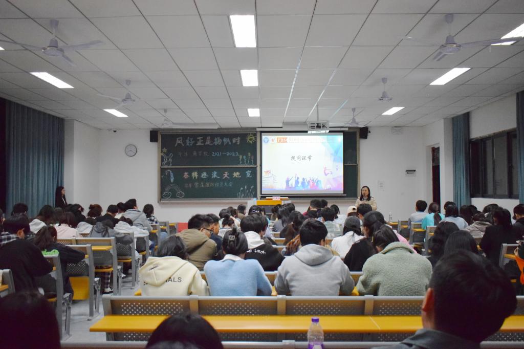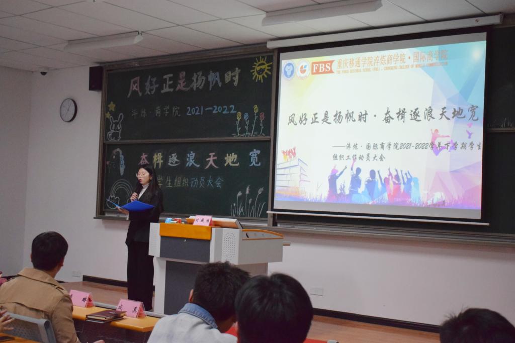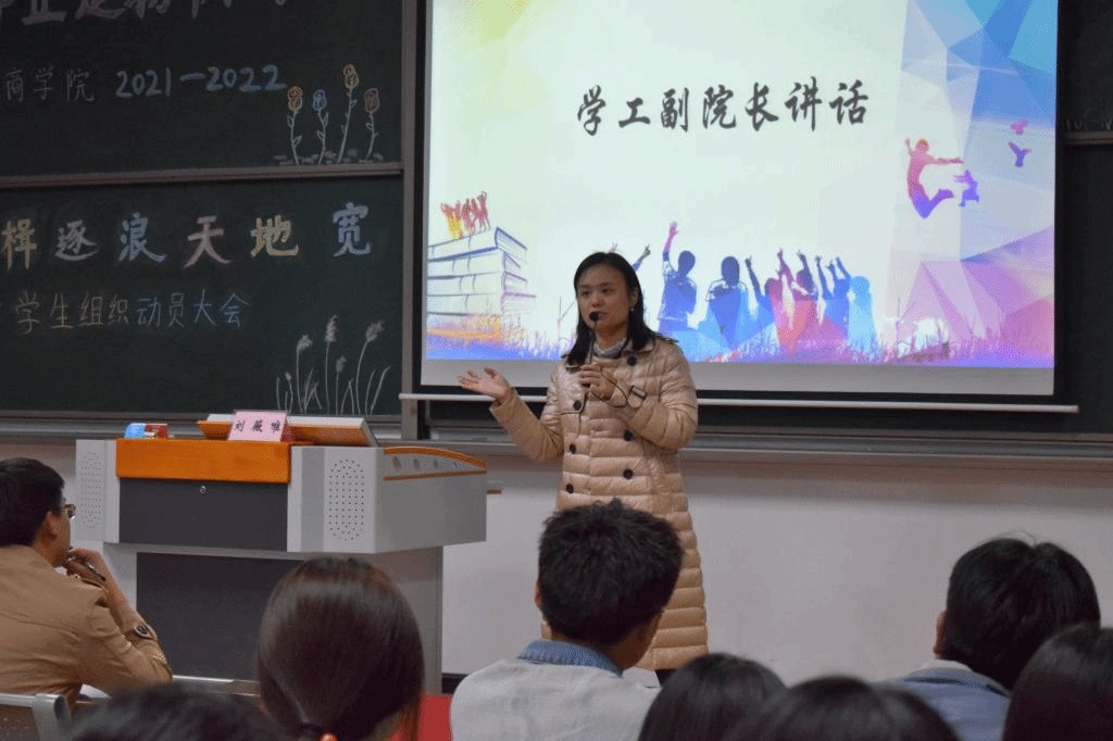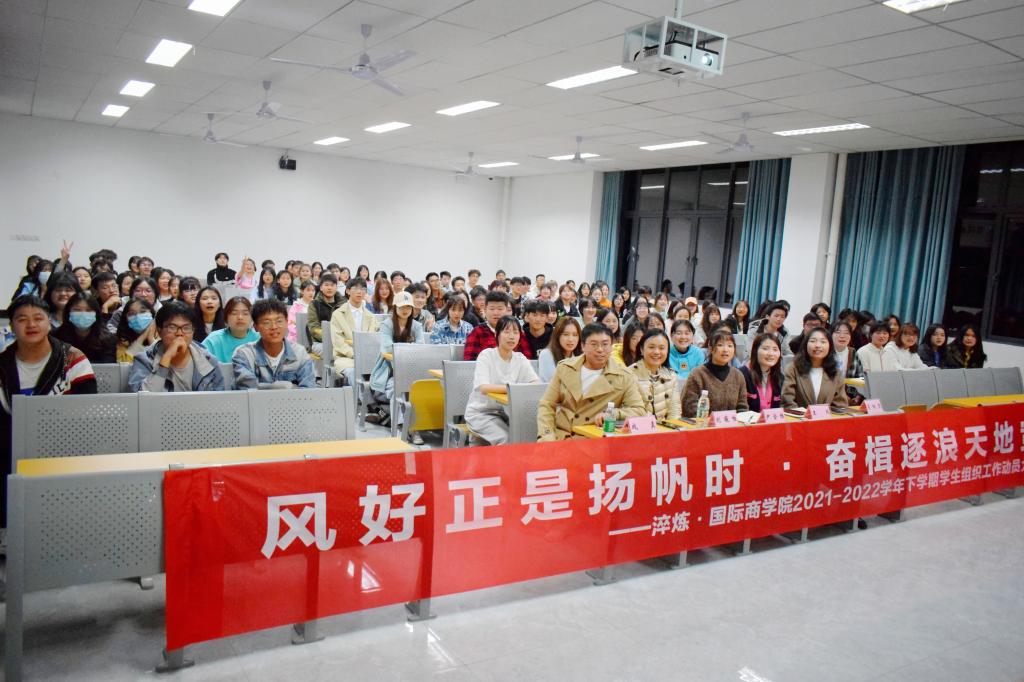 花开堪折直须折,莫待无花空折枝。新学期,新气象,为了提高商学院各学生组织干事的积极性,端正工作态度,带着饱满的热情投入到日后工作中去,淬炼·国际商学院于2022年3月7日晚上19:00在勇者楼403举办了学生组织工作动员大会。莅临本次大会的老师们有学工副院长刘薇唯老师,綦江校区学工办主任尹金维老师,竞技体育板块指导老师王凤老师,社团活动板块指导老师成真老师,志愿服务板块指导老师肖琳老师,艺术修养与实践板块指导老师苟桃吉老师。
