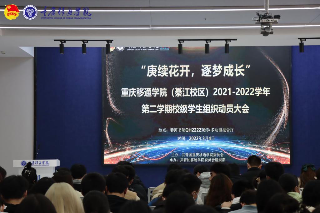 2021年,学子们满怀朝气踏进了移通学院,以满眼热枕,希冀在完美道路上成长。2022年3月2日于QH2222观涛·多功能报告厅举行綦江校区2021-2022学年度第二学期校级学生组织动员大会,移通学子们心怀过往成长之路,不自尽于平凡,续话完美之路。莅临本次大会的有重庆移通学院綦江校区团委副书记蔡星宇老师、校团委指导老师龙凤老师、彭昇老师、梁哲老师,校学生会指导老师杨佳燕老师、杨锦庆老师,以及校级学生组织干事代表。