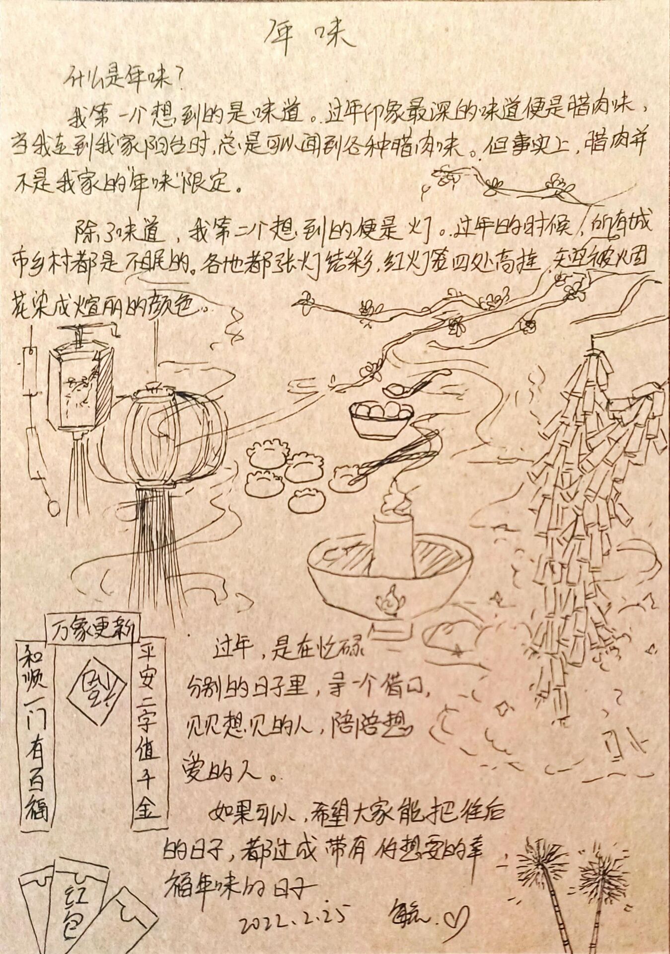 “我的年味是欢乐的,它能带走负面情绪,带走平日的吵闹,带走焦虑的思想”;