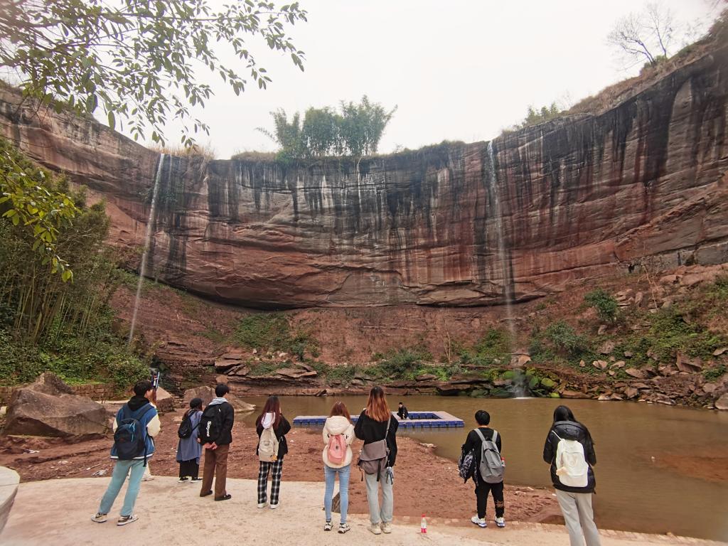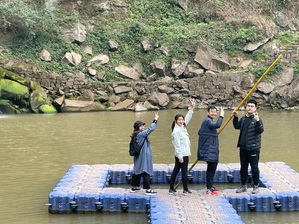 上午10点,迎着春风在校门处拍下新学期第一张全家福后,大家便结伴踏上征程,师生三五成群相互结伴,途径共和国工业史上八个独一、綦江工业、古剑山旅游度假区、綦江粮食储备库,一路上谈笑风生其乐融融。