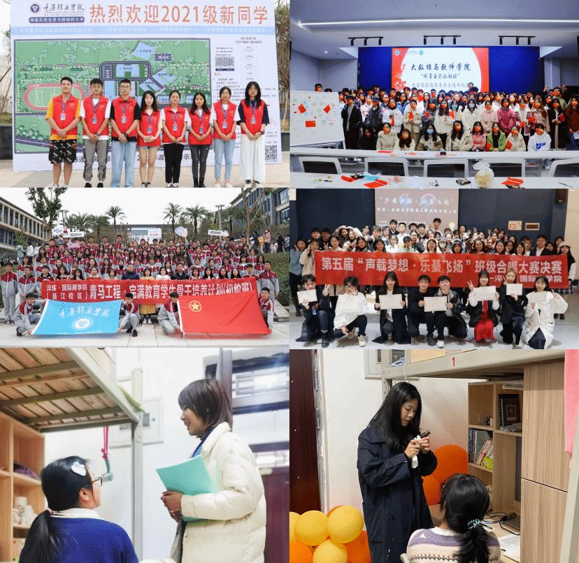 在綦江校区,班导师作为新生们的学长学姐,同时也用亦师亦友的身份陪伴学生的成长。他们穿插在新生学习生活的每时每刻中,在班会年级会上、在完满教育活动中、在矛盾调节里等都有他们的身影。他们在活动中展现组织策划的能力,在管理中展现师者的风范,在沟通中展现朋辈的关心。在这短短的100天中,班导师们扎实推进常规工作开展,显著提升学生日常管理效果,在学生思想政治教育方面能够及时掌握学生的思想动态,帮助学生改误纠错,引导学生树立正确目标,树立正确的人生观与价值观;在班团建设方面,带领班级同学积极团结在一起,培养学生干部在班级建设中骨干作用;在学风建设方面,通过活动、班委会的组织,带头早起开展早课早操,建立良好的班级学风;在对学生关心关怀方面,定期走访学生寝室,通过谈心谈话拉进与同学们间的距离、增进感情的交流,并收集反馈同学们热点问题,切实解决同学们的生活困难,减少学生工作隐患。除此之外为学生搭建全面成长的舞台,丰富校园文化生活,也是他们的重点工作,举办丰富多彩的完满教育活动,培训同学们的策划、组织能力,让学生从实践的活动中总结经验,去感受不一样的大学完满历程。