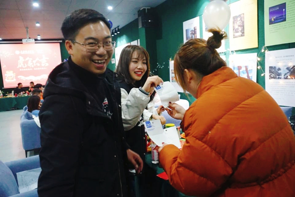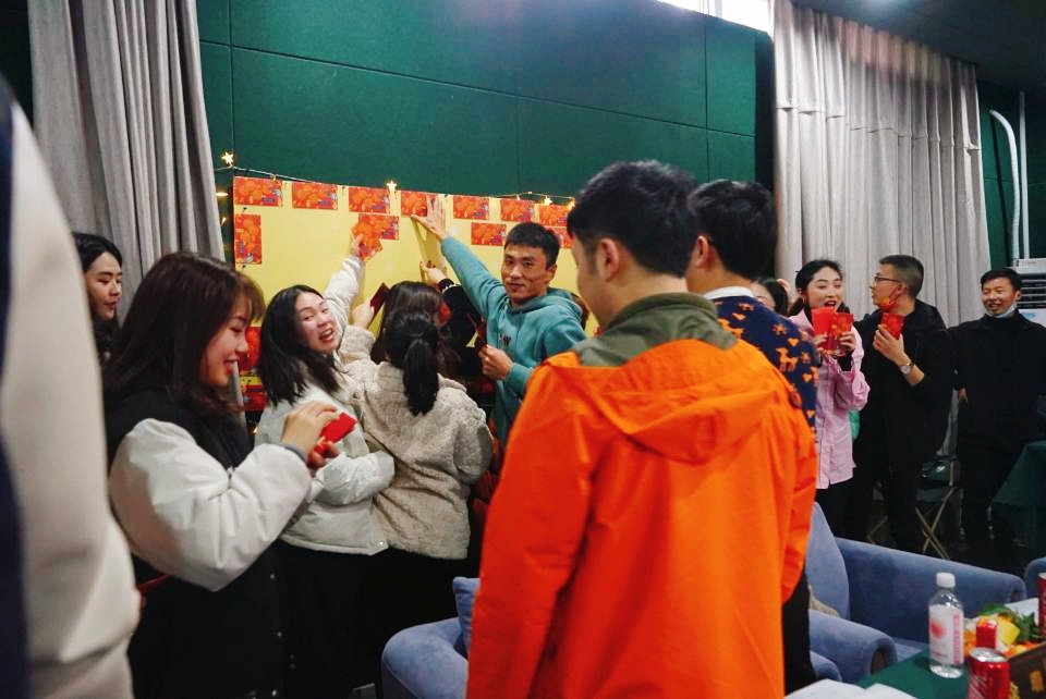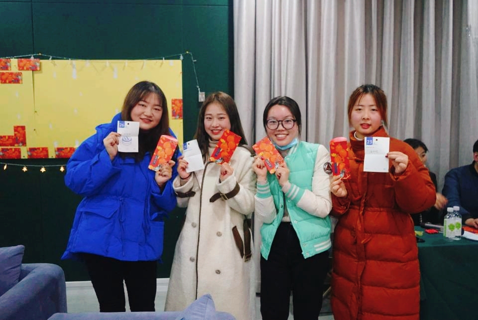 酒会临近尾声,怀抱着对新一年的期冀,老师们收到了来自书院的“红包”。每一份“红包”内都描述了老师们在2022这新的一年里需要完成的一件事——“给所有的好朋友发短信说‘我想你’,打卡一天喝8杯水,写下最感谢的人”……61个红包,内容份份不同,个个有情、有趣又有料。