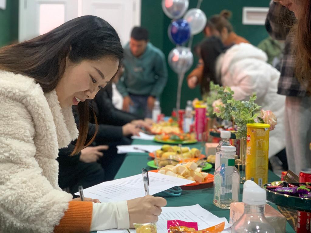 伴随着那些充满温度的回忆,酒会也进入到了新一阶段——“找到TA”。每位老师都拿到了一张单子,按规则要求找到上面对应描述的老师,并让TA在对应的位置签上自己的名字:“家里养了宠物的老师,做饭很好吃的老师,跳舞最好的老师”……酒会现场活跃的气氛进一步加强,老师们在一言一语的交流中对彼此的了解也更加深入,完满团队的凝聚力得以增强,如同一棵有力的苍松茁壮成长。