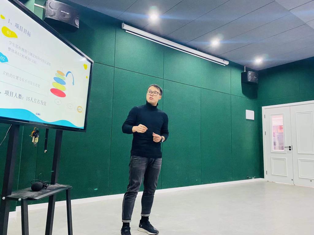 交流时,具有一定教学年限和教学经验资深老教练宋洋教练通过“盗梦空间”项目的改进为增强学生的创新能力提供解决方案,呈现良好沟通技巧;张桃教练通过“极速60秒”项目进阶让同学们回顾祖国光辉历程;段超教练通过“团队圣塔-汉诺塔” 做改进,锻炼大家逻辑能力的同时考验大家的体力与执行力。