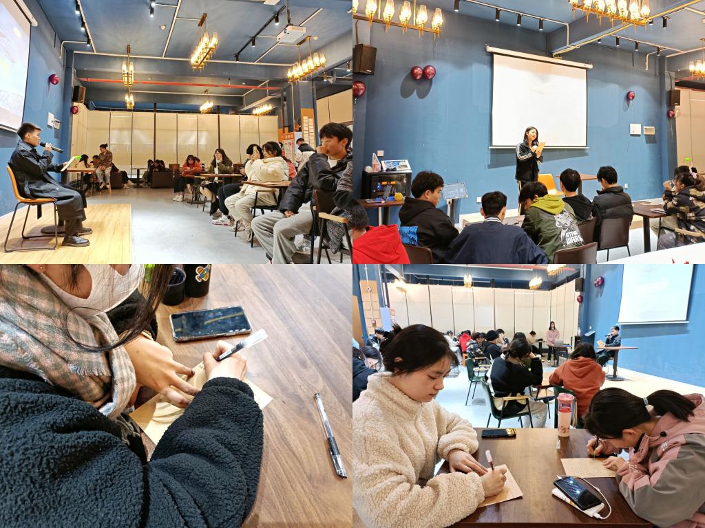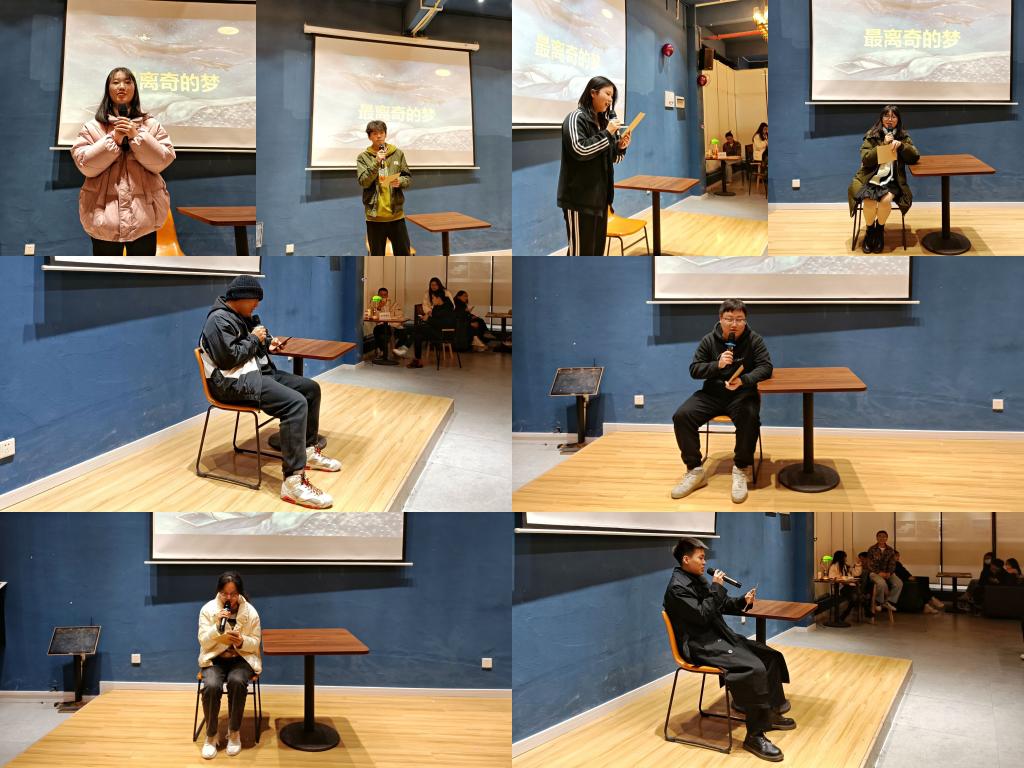 与此同时,綦河书院以“我最离奇的梦”为主题,与80余名书院学子,在故事茶馆中共同遨游在他们的星辰美梦里。学子们的梦境,有时光荏苒、人来人去的都市风景;有航海探险、迎击波涛的奇幻旅程;有梦回前世、擦肩寻觅的回眸相思;有报效祖国、试飞神州的星辰大海,也有弯腰栽秧,躬身大地的田园生活等等。在泛黄的窸窣灯光下,学子们安静的听着分享者们一个又一个美妙的奇遇,更多的故事也在綦河书院发生着……