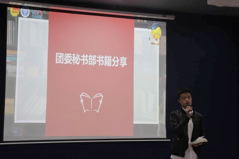 爱默生曾言“一个伟大的灵魂,会强化思想和生命”书籍无疑是众多思想灵魂的载体。我们在书籍的海洋里畅游,和名人对话,与古人共思。“读过一本好书,像交了一个益友”,组织部王泓锦同学分享了《董明珠与格力》,让我们感受到益友是如此的聪慧,思维的敏捷让我们为之叹服。在他的分享中让我们知道每一位成功人士的背后都是无尽的努力,启迪作为当代大学生的我们应该具备坚忍不拔的恒心和毅力,在遇到挫折的同时应迎难而上,不要畏惧,不要害怕,只有走过黑夜的人才不怕黑,只有经历过困难的人才不会畏惧困难。