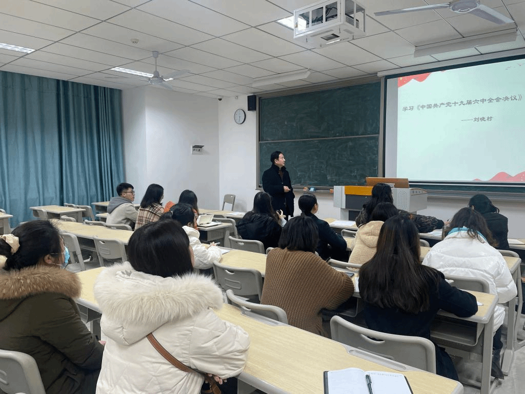 会议开始,由刘晓村副教授给大家解读党的十九届六中全会精神。刘晓村副教授从“党的三个历史决议、《中共中央关于党的百年奋斗重大成就和历史经验的决议》成果及内容”等方面给大家进行了一场“十九届六中全会精神”的党课学习。刘晓村老师渊博的知识、凝练的语言、厚重的理论深深吸引了教师党员们的眼球,大家认真做笔记,悉心求教。