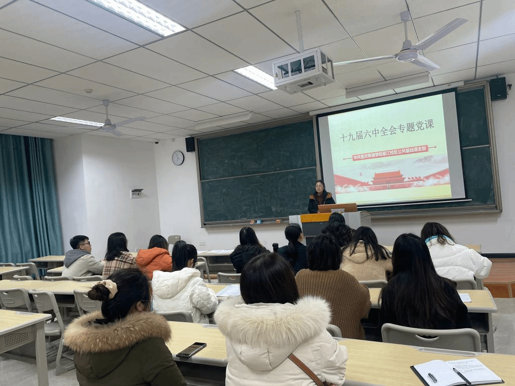 为深入学习十九届六中全会精神,将十九届六中全会精神进课堂、进头脑、进教材,同时结合教育部《高等学校课程思政建设指导纲要》要求,发挥课程思政示范引领作用,中共重庆移通学院綦江校区公共基础课党支部于2021年12月22日在仁者楼307召开了“以党建为引领,助推课程思政改革”为主题的党日活动。本次活动由支部书记唐孝庆主持,刘晓村副教授主讲,公共基础课支部全体党员共同参加。