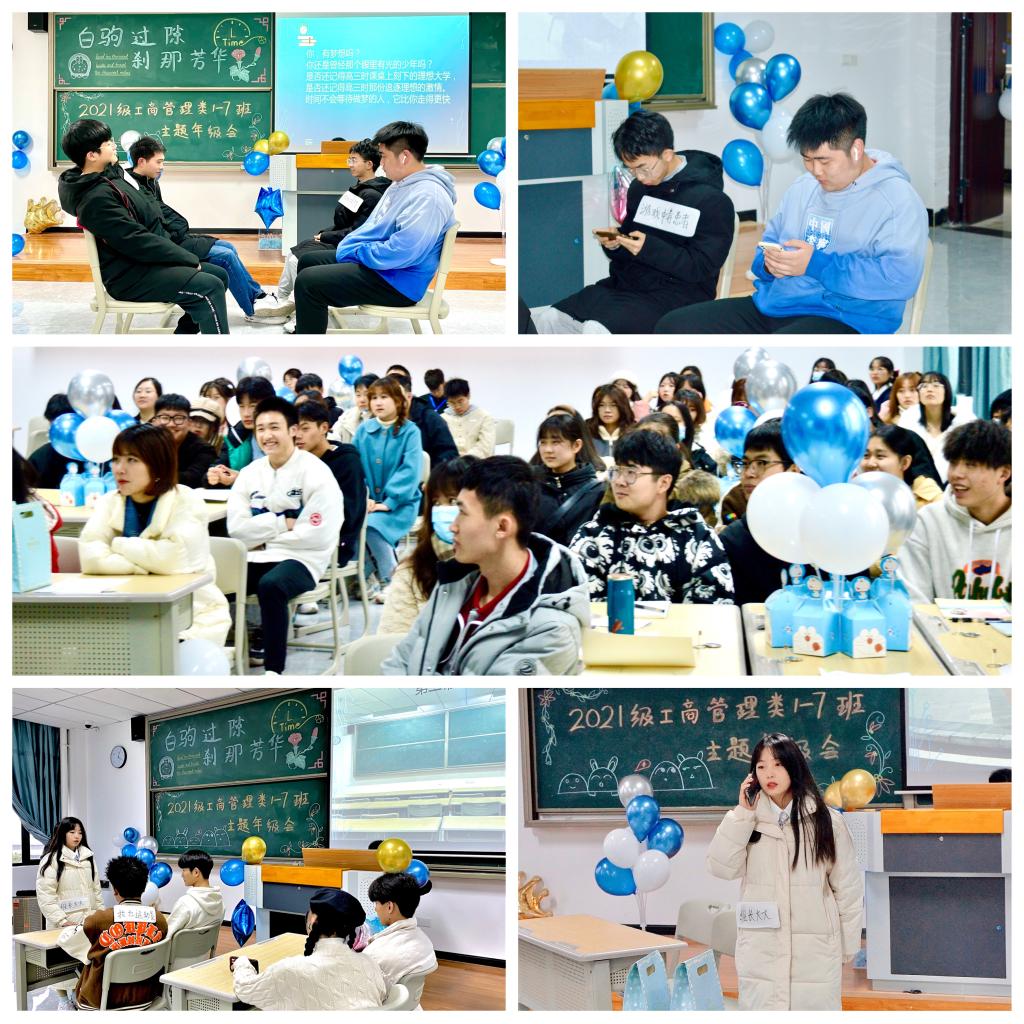 盛年不重来,一日再难晨。为引导同学们珍惜时间、做好大学生涯规划,懂奋进、知感恩,淬炼·国际商学院2021级工商管理类1-7班于12月15日下午16点在勇者楼202开展了“白驹过隙·刹那芳华”主题年级会。