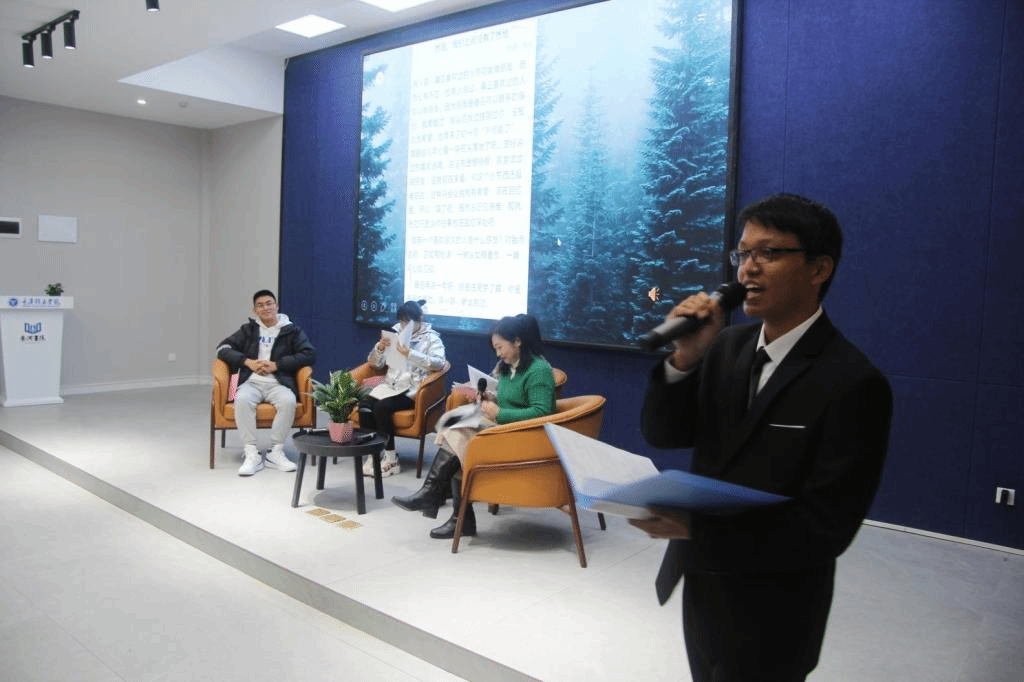 这四篇作品分别是王荣燚的《爱意》、从心的《然后,我们之间没有了然后》、雷琅壹的《蝴蝶结》、独角兽的《给你的一封情书》。蕴含情感诗意的文字,被文学社同学们如倾如诉、婉转动听地朗诵出来,更显语句的真挚、多情,把在场同学都带到了那美好纯洁的氛围之中。