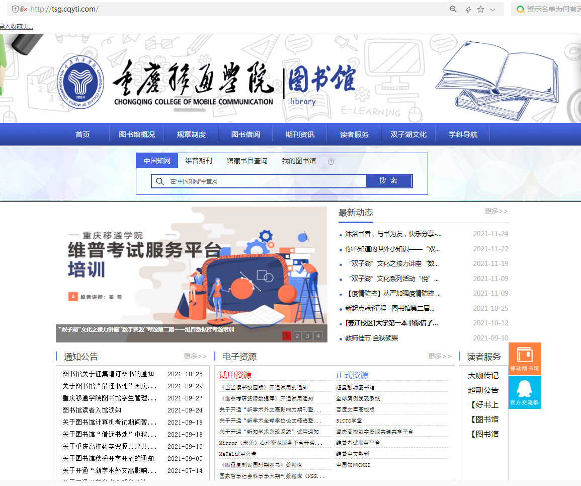 图书馆有超星移动图书馆、百度文库高校版、维普考试服务平台、中国知网等数十个数字资源数据库的152册电子图书、22048种期刊、2634042篇各类学术论文供大家使用。