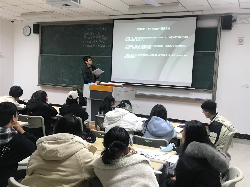 苏老师结合小说,剖析了几个问题:什么是“真正的爱”、衡量自我价值的标准是什么、如何面对“孤独”等,我在老师的讲解中,深深感受到了自己的无知。在书里我们都能找到自己的影子,却从未将书中的世界同困扰我们的问题相联系,从未深入思考其中所蕴含的人生哲理。若未上《创意阅读》课,也许我还会沉浸在那方小小世界自鸣得意,仍持狭隘观念看待万事万物。真正的阅读所带给我的意义就是深入挖掘内心世界。大家对苏老师的解答大为震撼,课间,纷纷讨论自己对阅读新的收获。