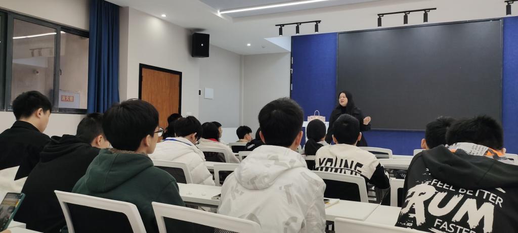 来自外语学院的朱陶老师安排了大咖阅读书目推介会,把我校大咖阅读活动的方案告诉了同学们,并阐述自己的理解。信息产业大咖传记阅读是在我校“新商科”办学定位和“四位一体”育人体系下,将“专业知识”与“商科思维”多维融合、是极具特色的一种教育实践活动。朱老师告诉同学们,阅读活动要分层次进行,采取精读书目与泛读书目相结合的方式进行,特别是精读书目,要结合外语系的实践课程,让同学们体验产品发布会、产品渠道调研、商业企划书等知识,突出学校的商科氛围。