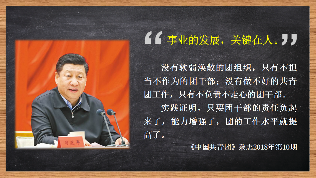 付梦竹老师以习总书记所言“没有软弱涣散的团组织,只有不担当不作为的团干部;没有做不好的共青团工作,只有不负责不走心的团干部”激励大家,强调作为基层团务负责人应提升自身素养,以身作则、树立标杆、不忘初心,坚定信念,拼搏向上。