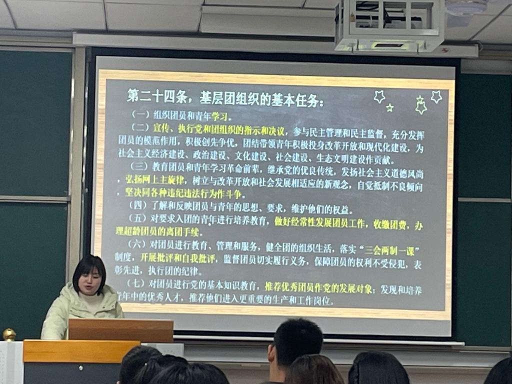 培训会上,付梦竹老师向大家详细介绍我校共青团组织基本情况,带头梳理我校共青团组织建设中从1月到12月需要完成的工作任务,具体讲解团支部书记“背靠背”满意度测评、春季推优入党、团代会、重庆“两红两优”评审,校内五四(先进集体和个人)评优表彰,团总支及十佳五四红旗团支部答辩评选、完超展演评选、市级团干大比武、团组织关系线上线下转出(智慧团建转出毕业生团组织)、线上线下建立新团支部、班团一体化、接收新生团员智慧团建线上转入录入和分配支部、团员发展、线下转入注册、补办团籍团员证、收缴团费、完满超级团支部、秋季入党推优、团支部“对标定级”自评整顿、年度党史学习录入、检验学社衔接率等21项基础团务工作内容和要求;此外付老师还深入讲述了“三会两制一课”以及《中国共产主义青年团章程》的具体内容和准则,引领师生们要遵守章程,以标准文件为做事参考,一步一准则。
