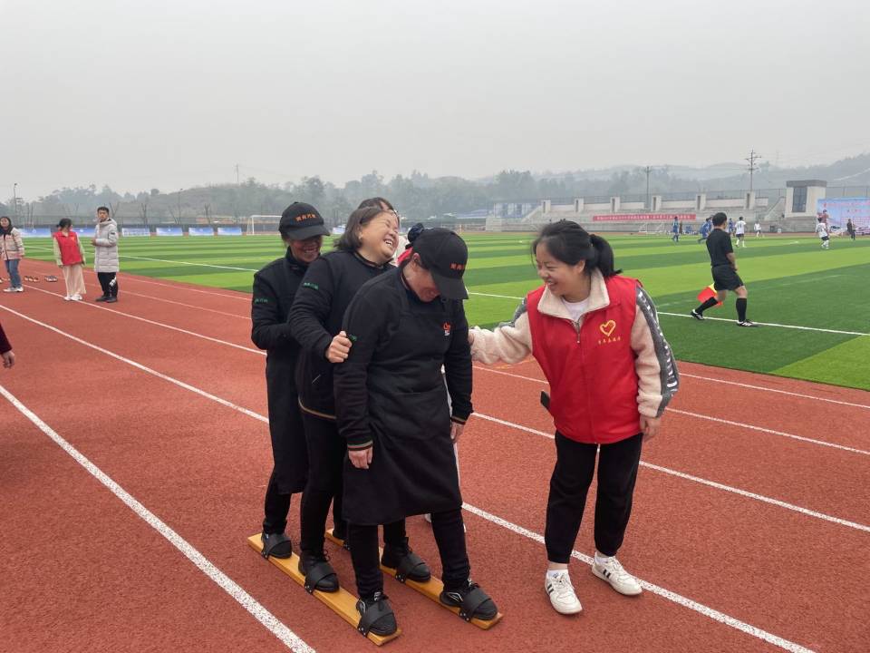 体验传统体育乐趣,多彩活动健强体魄。我校非常重视体魄锻炼,致力于树立健康运动理念,热爱传统体育文化,打造强健体魄。12月8日下午,阳光满溢,志愿者带领食堂阿姨一行人前往操场体验我校完满教育四大板块之一——竞技体育活动。活动现场,阿姨们争抢着上前体验,伴随着阿姨们和志愿者欢快的笑声,尽情享受传统体育项目带来的乐趣,其中包括:高跷竞速挑战、“綦心綦力”板鞋、动感竹竿舞、长绳、背篓绣球、滚动的铁环“风火轮”...本次活动的开展让我校职工人员切实体验到我校青年学子的多彩活动,工作之余收获满满快乐与感动,这也是我校志愿者践行志愿服务的初心。
