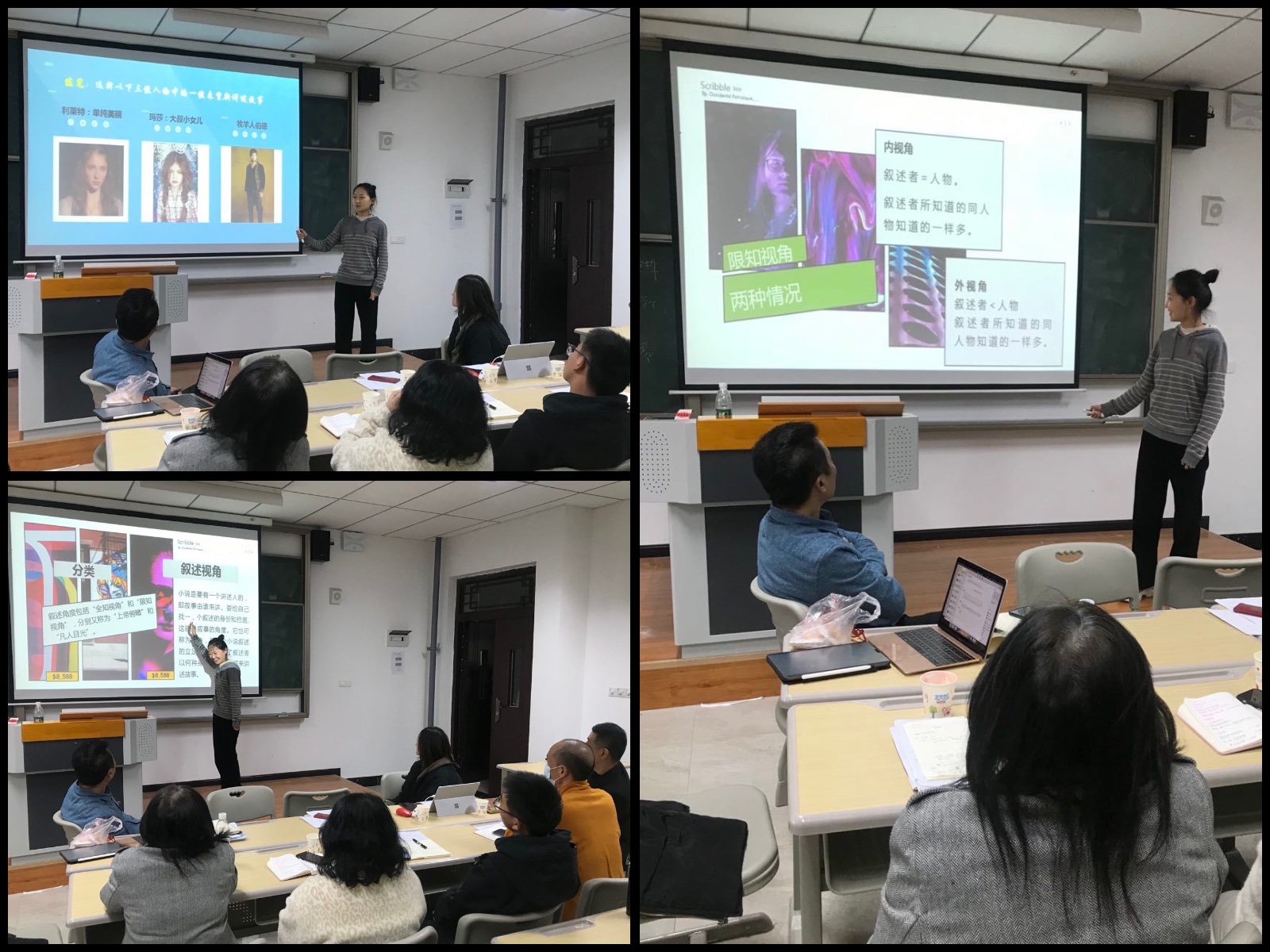 为进一步提升教师的业务素质,促进教师队伍的交流与学习。创意写作学院于12月3日下午开展了教学研讨系列活动,活动由副院长苏瓷瓷主持,全体教师参与,新教师段瑶老师、刘聪慧老师进行《创意写作》课程第10课:叙述视角的说课。