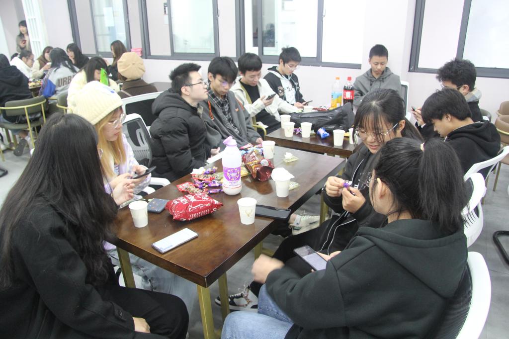 活动当天,大家既分工又合作。师生们先是在书院部共享厨房包饺子、煮汤圆、做菜做饭,共享自己亲手烹制的美食。舌尖上的美味,让同学们感受到了“家”的便利,个个脸上洋溢着“味”的悦然。晚饭过后,同学们按计划在星云影音室开展了诗词接龙、你画我猜、投壶游戏、诗歌音乐诵读、卡拉OK、茶话会等活动,其乐融融的团聚和一个个有趣的活动让同学们彻底放松自己,室内不时传出欢声笑语。