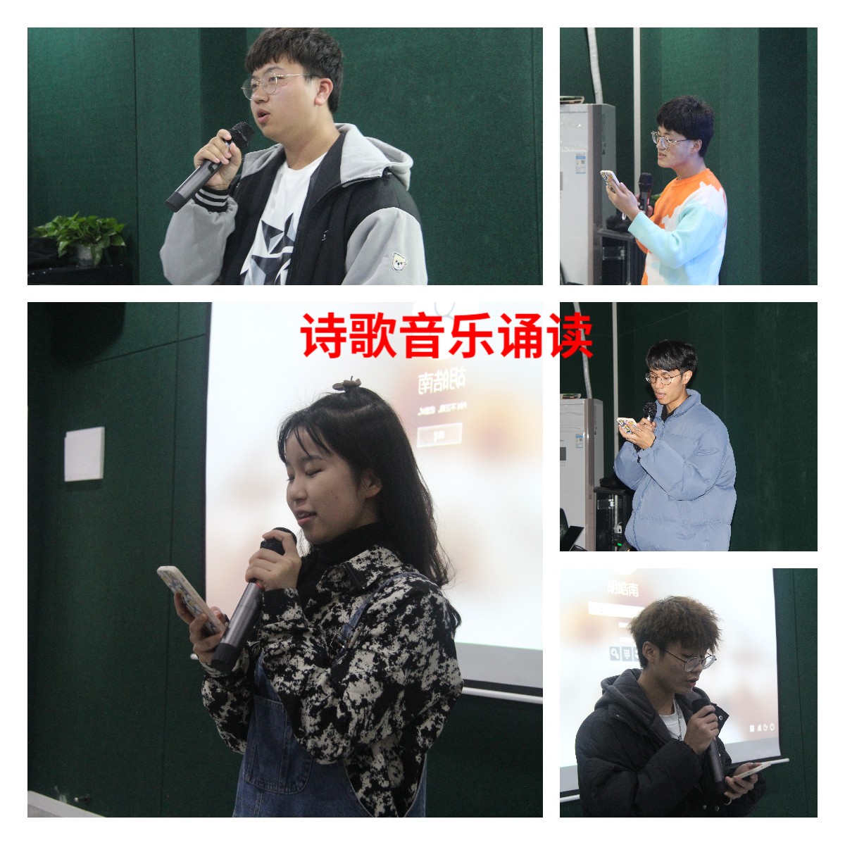 同学们接着朗诵了青年诗人范庆奇老师的新作《书院路以南》等诗歌。看见有同学朗诵自己老师的诗歌,作为范庆奇老师诗歌工坊学生的田璐和李志斌等同学也按捺不住内心的喜悦,一一上台分享了自己在范老师指导下写的诗歌,一首首饱含真情的诗歌,把联谊活动推向高潮。
