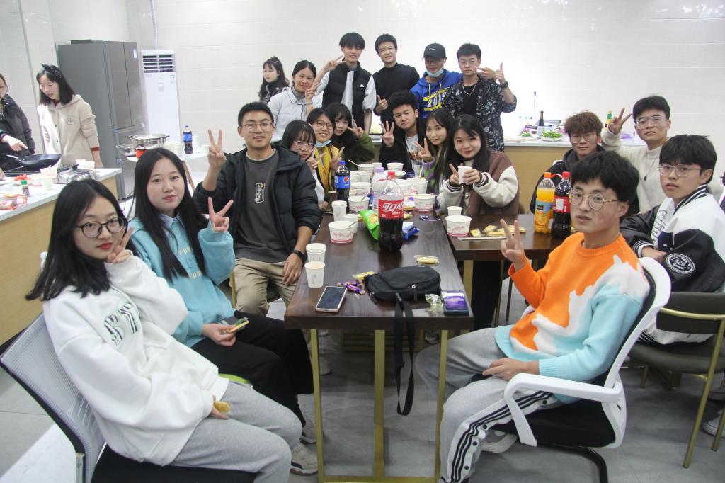 活动中,三位老师全程融入在同学们中间,或与同学们一起烹制菜肴,或与同学们促膝谈心,或为同学们拍照留念。特别是年轻的段瑶老师和范庆奇老师此时一改课上师者的“范儿”,戴上围腰与同学们一道下厨,又见缝插针地和同学们谈心,参与同学们组织的一个个小活动,俨然像极了同学们自己的哥哥姐姐。