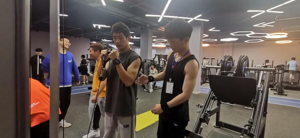 在充满青春与朝气的today·健身房里,同学们肆意挥洒着汗水。为了让同学们能够正确使用健身器材,工作人员在一旁认真地指导着他们。