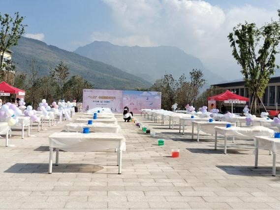 11月24日10:00,由林红老师和张纯霞老师带队,指导彩虹心语社全体干事进行现场布置工作。活动现场以代表神秘和优雅的淡蓝色和淡紫色为主色调,辅以温和浪漫的粉色,营造出温馨安全的参赛环境,让参赛师生可以在这样的环境里自由表达,一方面获得良好的减压体验,另一方面也可以通过合作过程中的沟通、评价性的反馈、真诚的赞许等,探索彼此在哪些方面可以建立情感联系,从而达到更为深刻的“相知”。活动开始前,就吸引了大批参赛者前来,师生们都迫不及待地想要体验手工带来的乐趣。