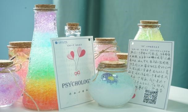 为展现当代个体的创意,体现宿舍整体风貌,增强师生心理素质,绿化精神后花园,树立善待自我、关爱他人、健康成长的心理健康理念。2021年11月24日14:00,“1125心理健康成长月”系列活动之二“日拱一卒,相知有素”首届心理手工大赛在图书馆前广场顺利开展。本届心理手工大赛以海洋瓶制作为形式,以“相知”为主题,为师生开启一条增进与室友之间彼此了解的渠道,以一种非语言的表现形式表达内心情感。因师生在心理绘画大赛中参与体验感极佳,心理手工大赛形式新颖,且有助于增进宿舍成员间交流互动,故而心理手工大赛参与人数达到系列活动的高潮,师生超2500余人次参与,共完成800余份手工作品。
