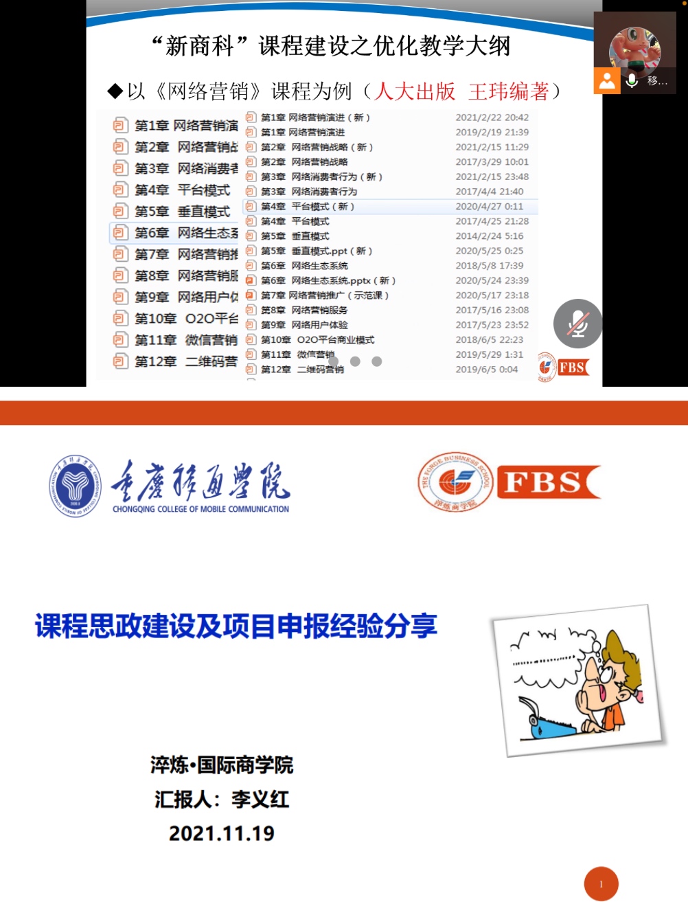 紧接着重庆移通学院寇小玲老师分享申请《市场营销学》精品课程经验,分别从课程成果的积累、课程团队任职、教学经验丰富、申报书填写等方面全方位做了分享。