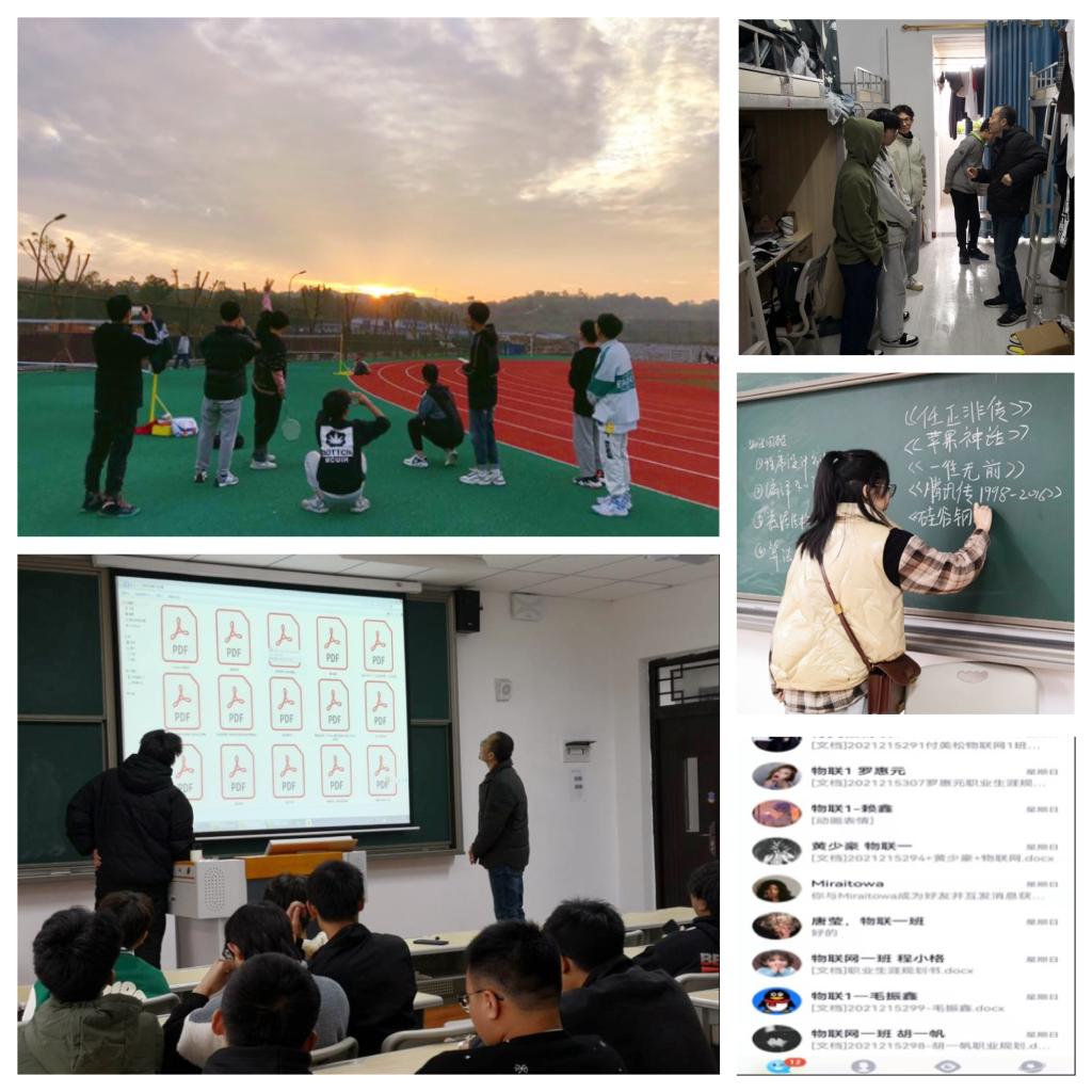 来自财务处的王晰老师、外语学院的伍世艳老师、黄重老师及通识教学部的冯婷老师都与自己所带班级的学生开展了集体见面、小组谈话谈心、小范围见面聊天、职业规划设计大赛指导等活动,深入了解学生们的学习、生活和心理状态。