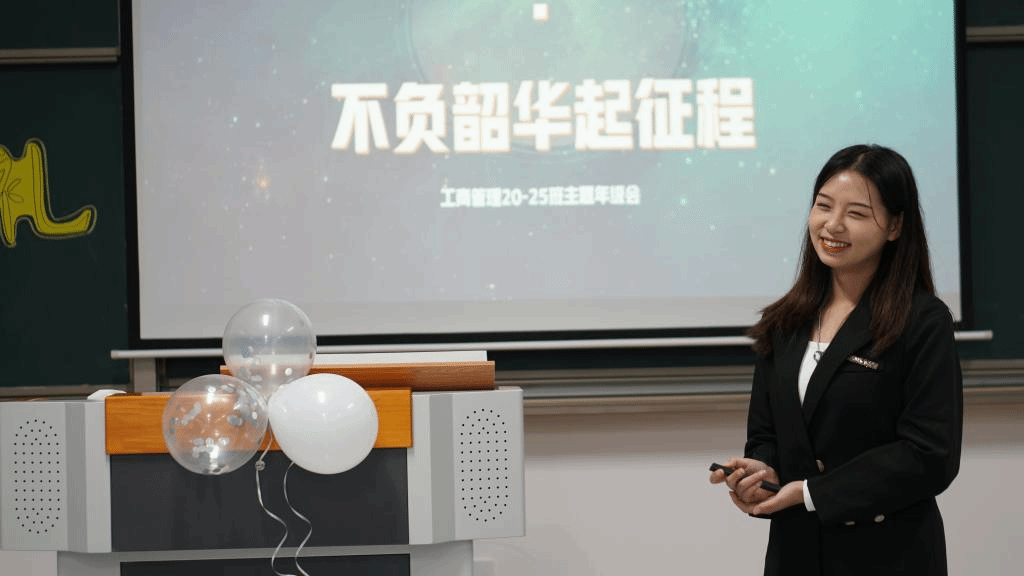 阳光普照,鲜花绽放。岁月年轮像黑色胶片旋转着,在成长之路上播放着一首首拼搏努力的旧曲,从稚嫩走向成熟,从迷茫走向清晰。淬炼·国际商学院工商管理类20-25班于11月21日晚上7点半在勇者楼202举办了“以梦为马定初心,不负韶华起征程”生涯成人礼主题年级会,同时在抖音平台面向因疫情原因无法参与线下会议的同学们进行全程直播。来到现场的同学们衣着整齐,各个都显得神采奕奕,期待在此次年级会中成长、探索未来!