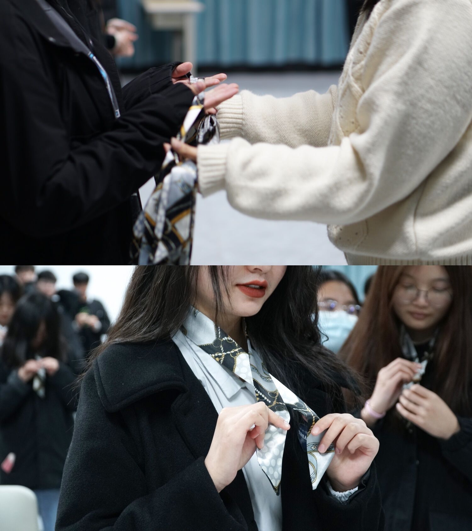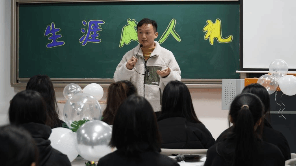 “青年志存高远,就能激发奋进潜力,青年岁月就不会像无舵之舟漂泊不定。”辅导员苟桃吉对本次年级会这样总结道,强调此次成人礼给同学们带来的意义,大家肃然起立,在辅导员的带领下,同学们为自己戴上人生的第一个领结和第一条丝巾,这意味着真正的成人生涯正式开始。走出这间教室,希望同学们沉着冷静、积极向上,披星戴月地去面对未来,拥抱梦。这次年级会不仅是一场成人礼仪式,更是开启未来的关键一晚。